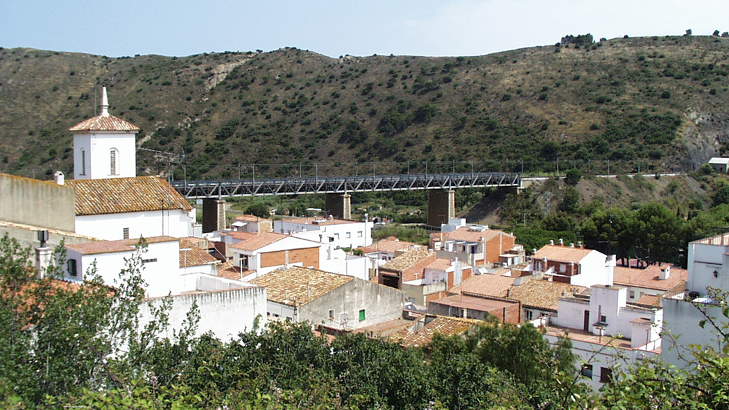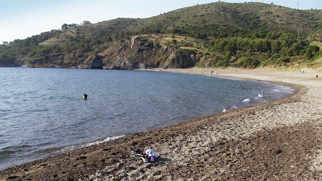 Die Garbet-Bucht südlich von Colera. Strand und Zeltplatz gehören mit zur Gemeinde Colera. Die Bahn führt von Frankreich bis in den Süden Spaniens. Züge kommen relativ selten und sind kaum hörbar. Vorteilhaft ist die wind- und wellengeschützte Lage des Strandes.