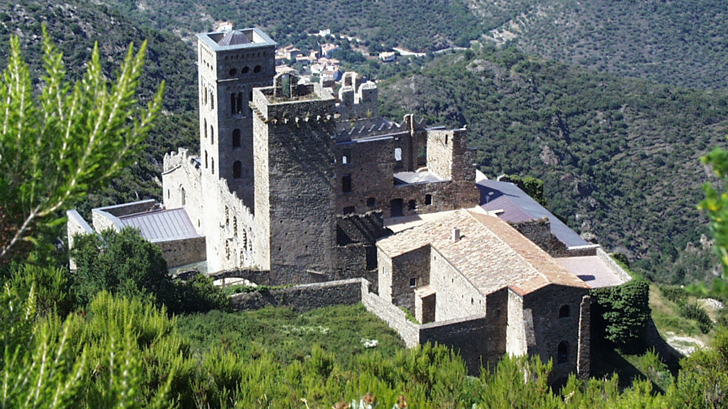 Der Gebäudekomplex des eigentlichen Klosters Monestir de Sant Pere de Rodes. Es gibt mehrere Türme. Schon im 10. Jh. wurde das Kloster eigenständig und die Glanzzeit auch als Pilgerort begann. Ab dem 17. Jh. verfiel das Kloster und wurde im 19. Jh. weitgehend ganz aufgegeben. Seit 1986 erfolgt die schrittweise Restaurierung von der Generalitat de Catalunya.