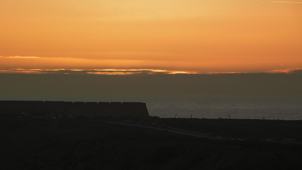 Die Scheinwerfer der Fortaleza de Sagres blieben heute aus. Düster hob sich das Steinmassiv vom Horizont ab. Vielleicht war etwas defekt? An anderen Tagen wurden sie immer mit der Dämmerung eingeschaltet. Nur die Leuchtturmlichter strichen lautlos durch die Nacht.