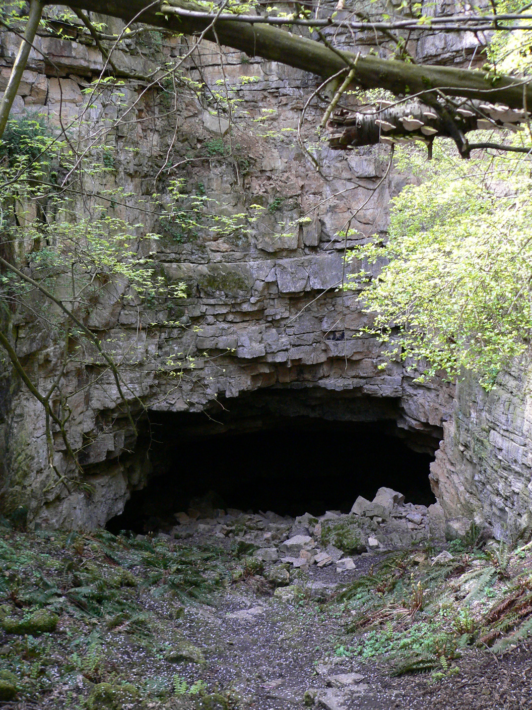 Links der Eingang zum Felstor, allerdings schon pitschnass