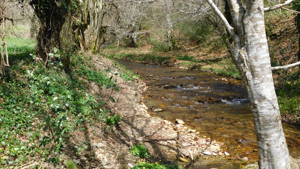 Das ist der Bach gleich neben meinem Schlafplatz auf dem großen Parkplatz in Roncesvalles. Heute früh wühlten gegenüber zwei Waschbären im Laub, wahrscheinlich auf der Suche nach ihrem Frühstück.
