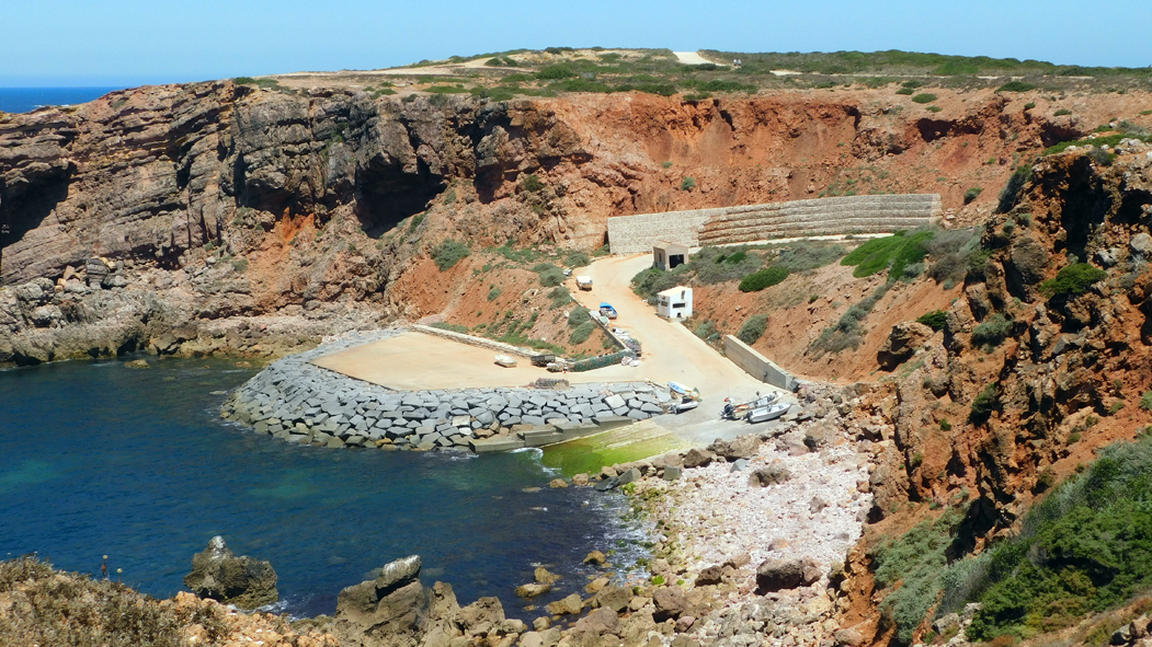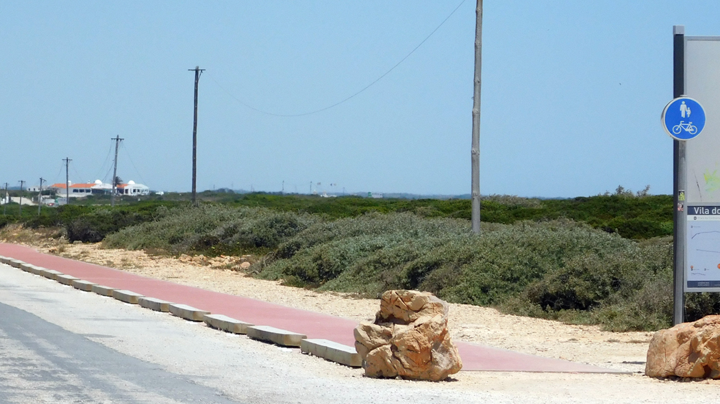 Gewöhnlich sind es von Odemira bis Sagres nur noch etwa 100 Kilometer. Eine weitere Umleitung war nach dem Ort Baiona nötig. Normalerweise führt die N120 kurz nach Baiona über den Fluss Ribeira de Seixe und danach den Berg hinauf auf direktem Wege nach Maria Vinagre, einem kleinen Ort, in dem es übrigens auch einen beachtenswerten Rastplatz für die Nacht gibt.
