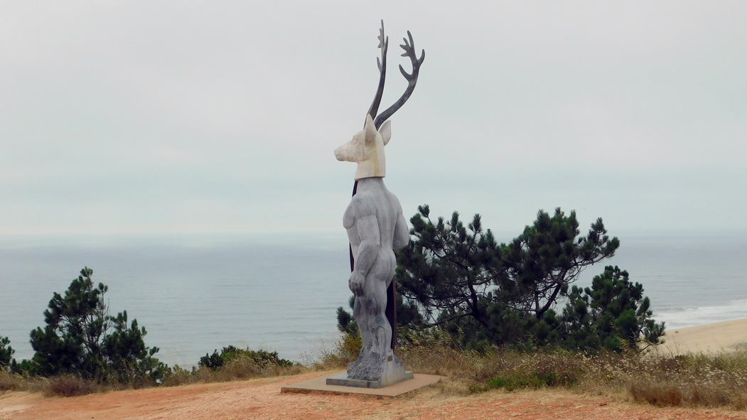 Sítio of Nazaré was once very populated by deer. the fomous Legend of Nazaré reports that Dom Fuas Roupinho was hunting in Sítio and that, on a foggy 12th century morning, he isolated himself from his companions when he was chasing a deer that fell on the cliff. On the verge of fall, the knight cried out for the help of Our Lady of Nazaré. The horse sticked its rear legs at the top of the cliff immediately, saving Dom Fuas Roupiho's life. In recent years, Praia do Norte of Nazaré has been the stage where the biggest waves on the planet are surfed - 30 meters have been recorded. In this anthropomorphic work by Agostinho Pires and sculptor Adália Alberto (offered to the Municipality of Nazaré) the references to these two remarkable moments of Nazaré's history are visible, extolling the past and praising the present, both conjugated in the sculpture "Veado".