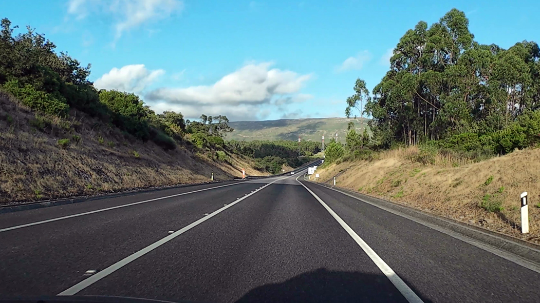 Die Fahrt in Portugal ist noch entspannter im Vergleich zu Spanien. Besonders in der Mittagshitze und dazu noch auf kleinen Landstraßen sind nur wenige Fahrzeuge unterwegs.