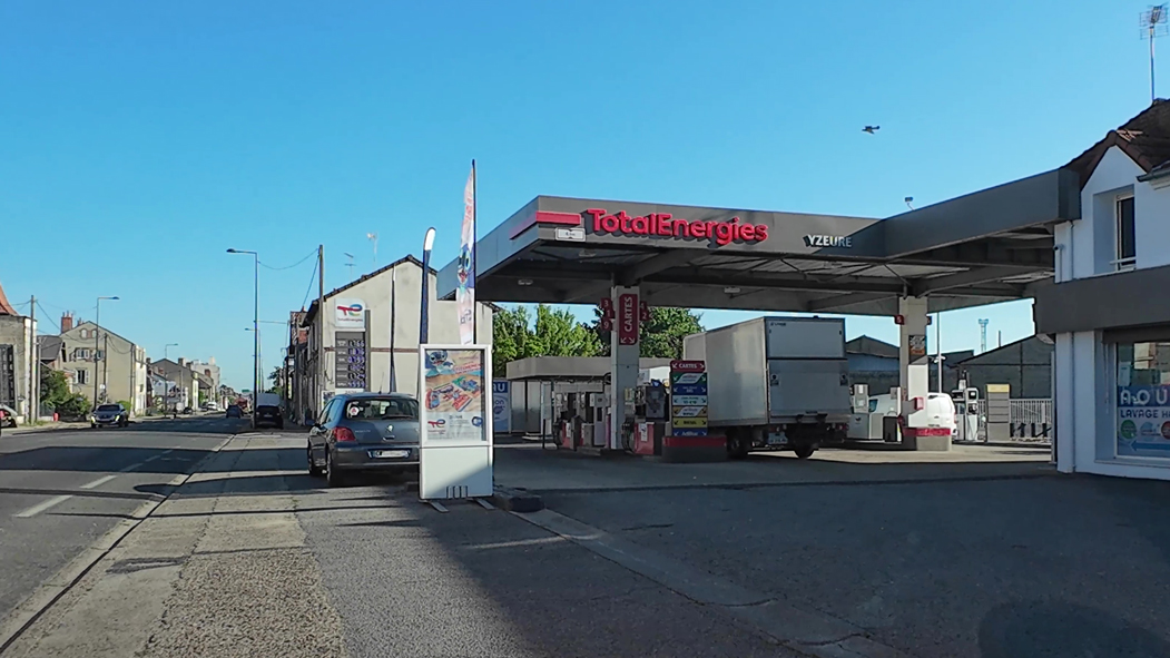 Tankstelle in Moulins mit Cache-Zahlung beim Tankwart. Meist ist in Frankreich eine Karte oder ein Smartphone nötig. Ich habe nur Geld. Der Tankwart erkannte mich vom vorigen Jahr.